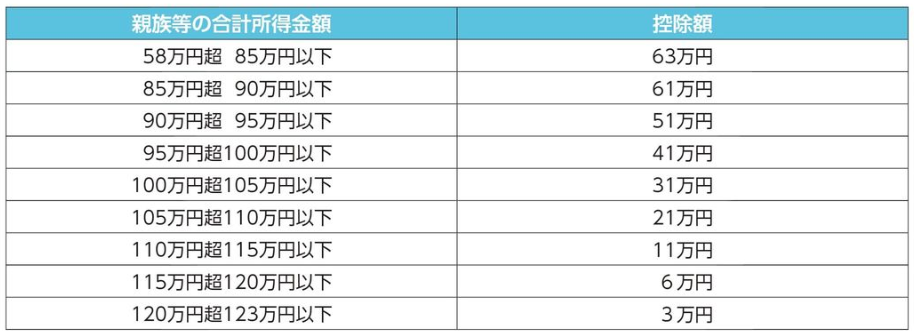 - 所得が「58万円超〜123万円以下」(給与収入でいうと約123万〜188万円くらい)