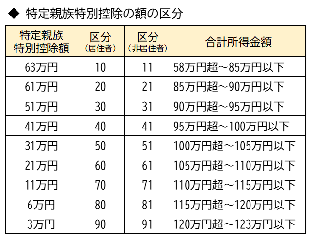 これにより、控除対象扶養親族ではない『特定親族』の名前も記入できるようになり、区分欄に各人の特定親族特別控除額に応じた番号を記入することで、控除対象扶養親族なのか特定親族なのかを判断できる仕組みになっています。