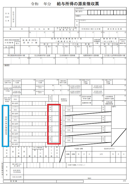 何を書くの?給与所得の源泉徴収票の区分欄(特定親族特別控除)